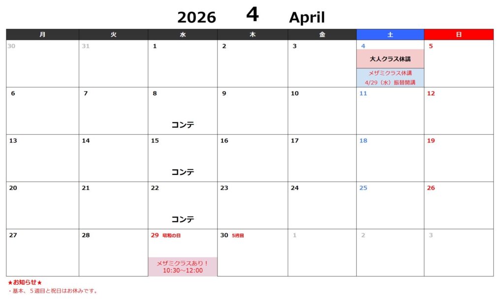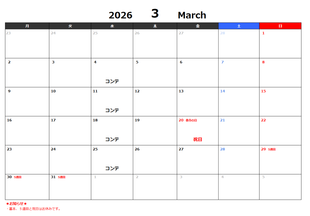 【毎月のお休み】